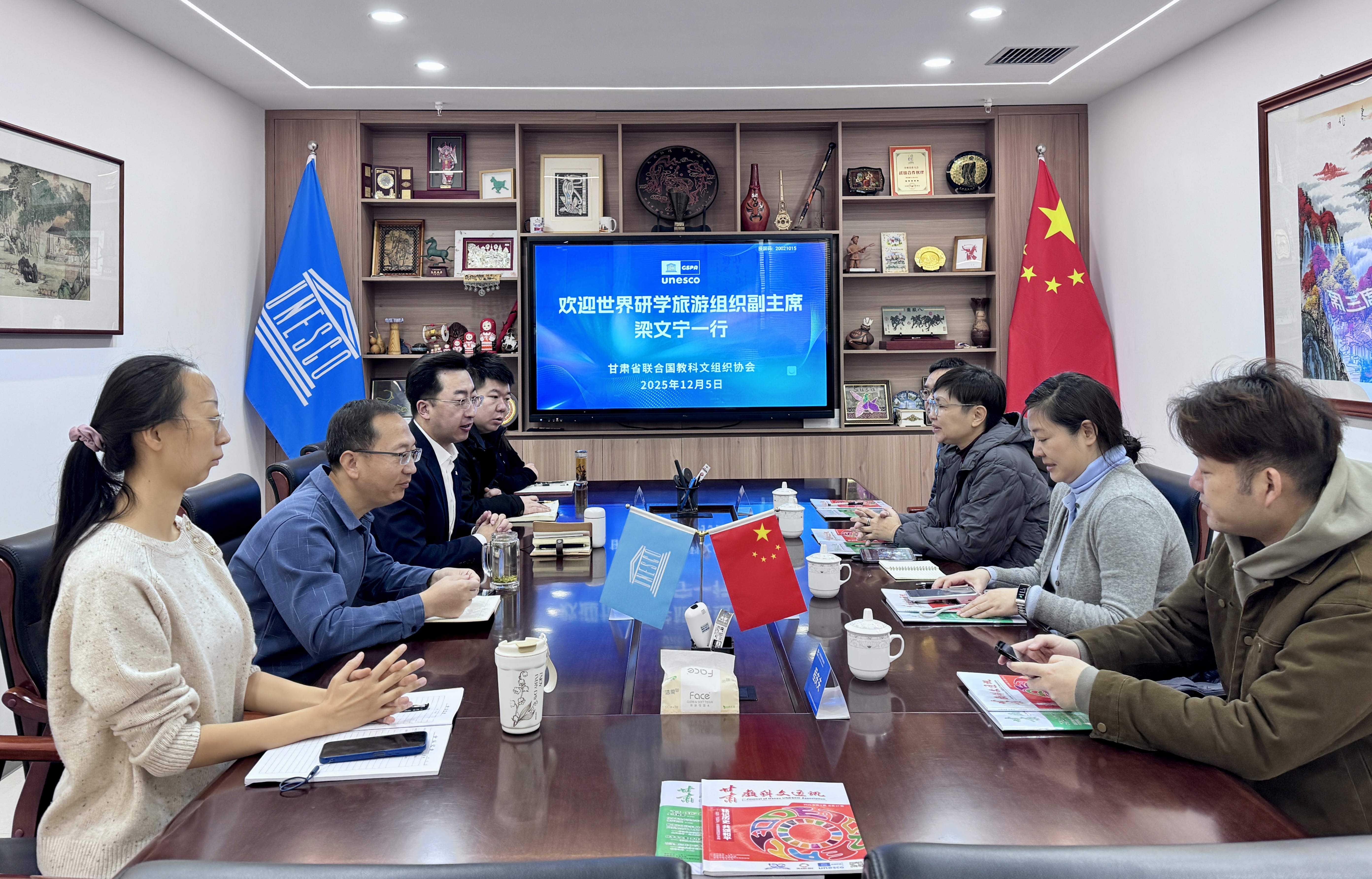 随后,双方就具体合作方向展开细致探讨。梁文宁提出,可结合甘肃丝路文化特色,共同开发国际研学精品线路,组织青少年来甘开展文化探访研学活动。杜永军会长表示,协会将全力配合世界研学旅游组织的合作规划,整合省内优质文旅与教育资源,做好研学线路设计、服务保障等工作。他希望以此次合作为契机,进一步提升甘肃研学旅游的国际知名度与影响力,搭建甘肃与世界各国青少年文化交流的桥梁,助力“一带一路”文化交流事业发展。