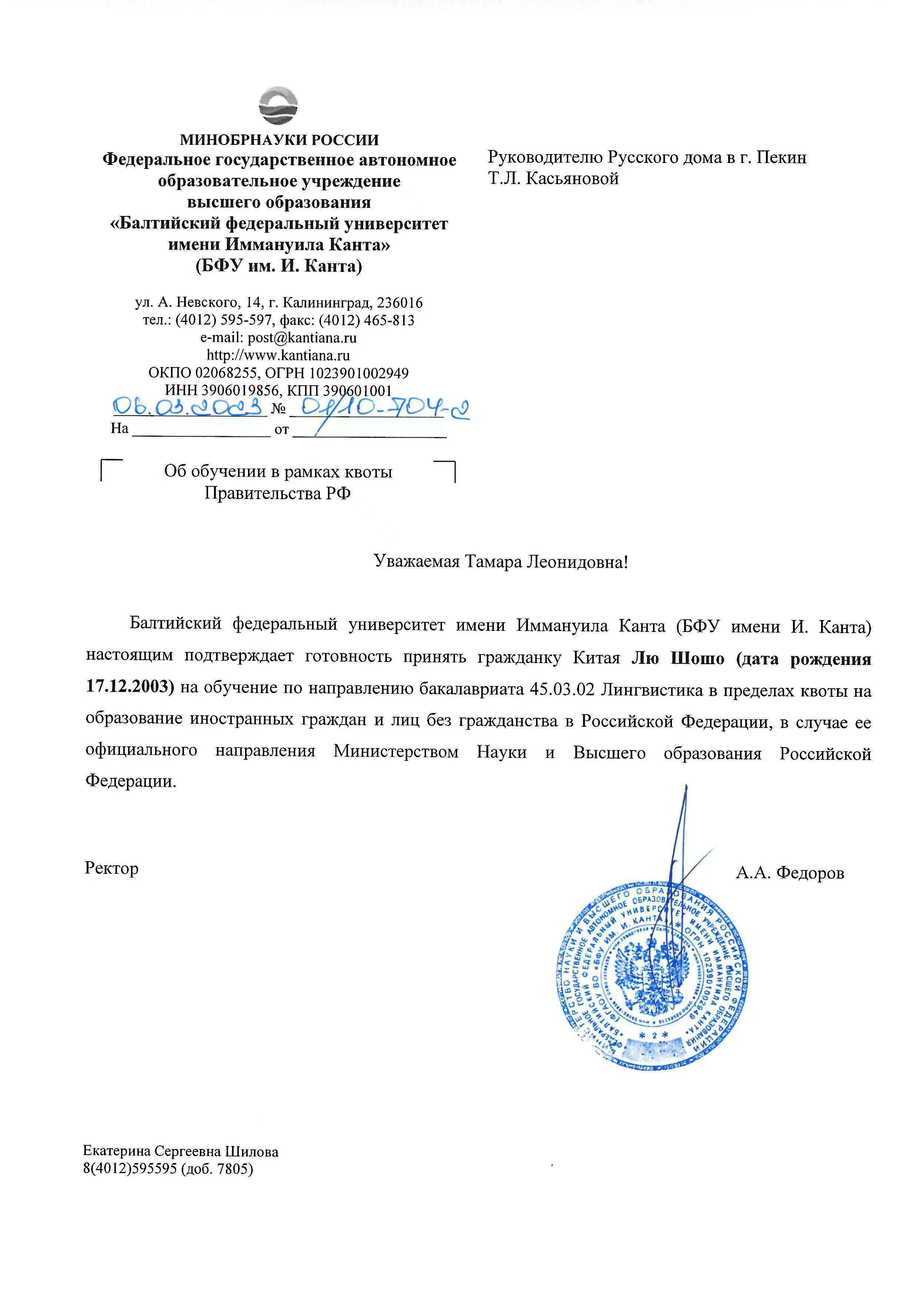 【恭贺】李卓祥同学喜获俄罗斯联邦萨马拉国立文化大学录取!