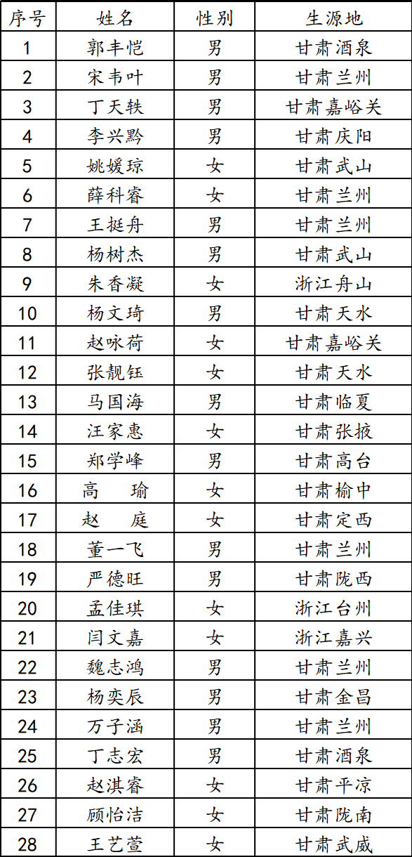 经线上、线下公开面试选拔,现将通过2023年6月第一批次赴国外重点大学本科留学面试的28名学生名单(按参加面试顺序)公示如下: