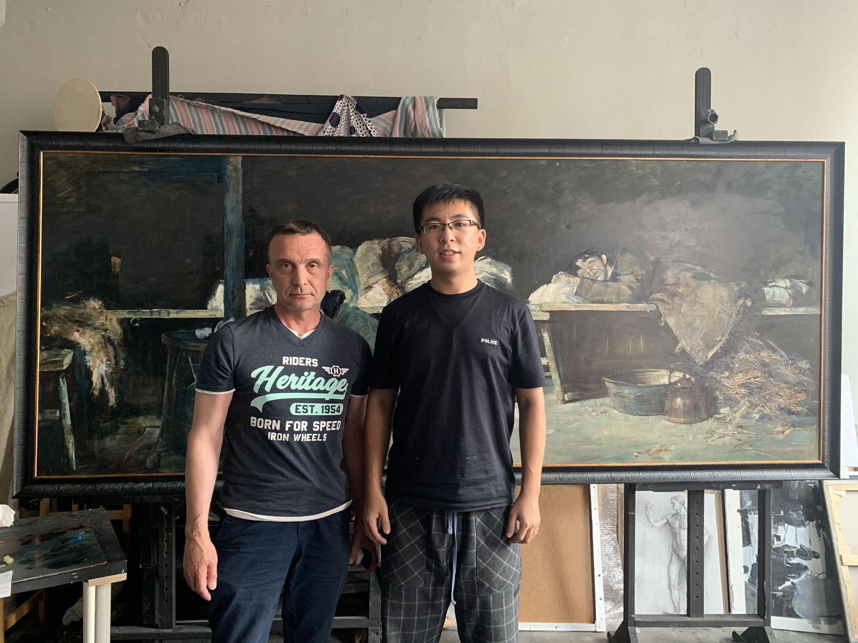 次年6月,为期一个月的入学考试开始了。首先考察的便是俄语这门课程,牛政兴凭借出色的语言成绩脱颖而出。预科阶段原有大约200名学生同时在校学习,但最终因语言成绩被刷掉的人数就有一半左右。接下来就到了专业考试的阶段,选定油画系目标的考生们每天需要画4-5小时,最终以成绩排名论高下,世界各地的同学们就此展开激烈的竞争。功夫不负有心人,在仅招收18人的油画系的激烈角逐中,牛政兴最终以第15名的成绩成功考入。这所让莘莘艺术学子千辛万苦甚至准备数年才能考上的顶级美术院校,真正为牛政兴敞开了大门!